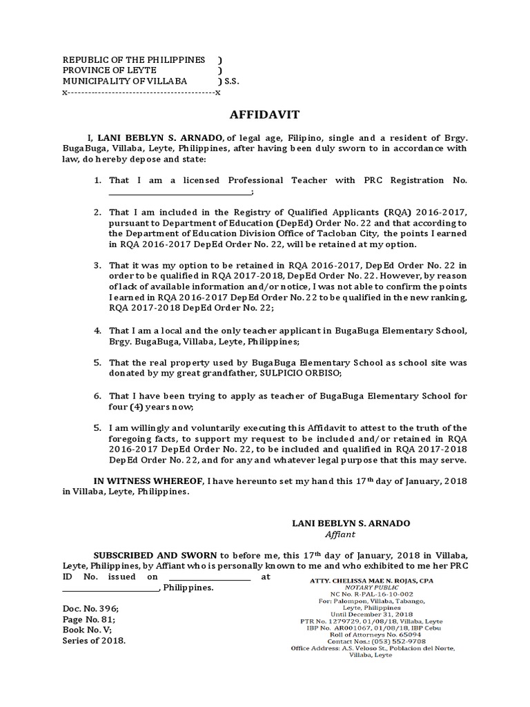Affidavit For Ranking Affidavit Civil Law Common Law