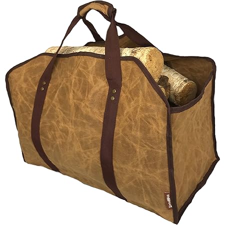 Amazon Com Canvas Firewood Log Carrier Bag Waxed Durable Wood Tote Of Fireplace Stove Accessories Extra Large Hay Hauling With Handles For Outdoor Camping Rust Home Kitchen