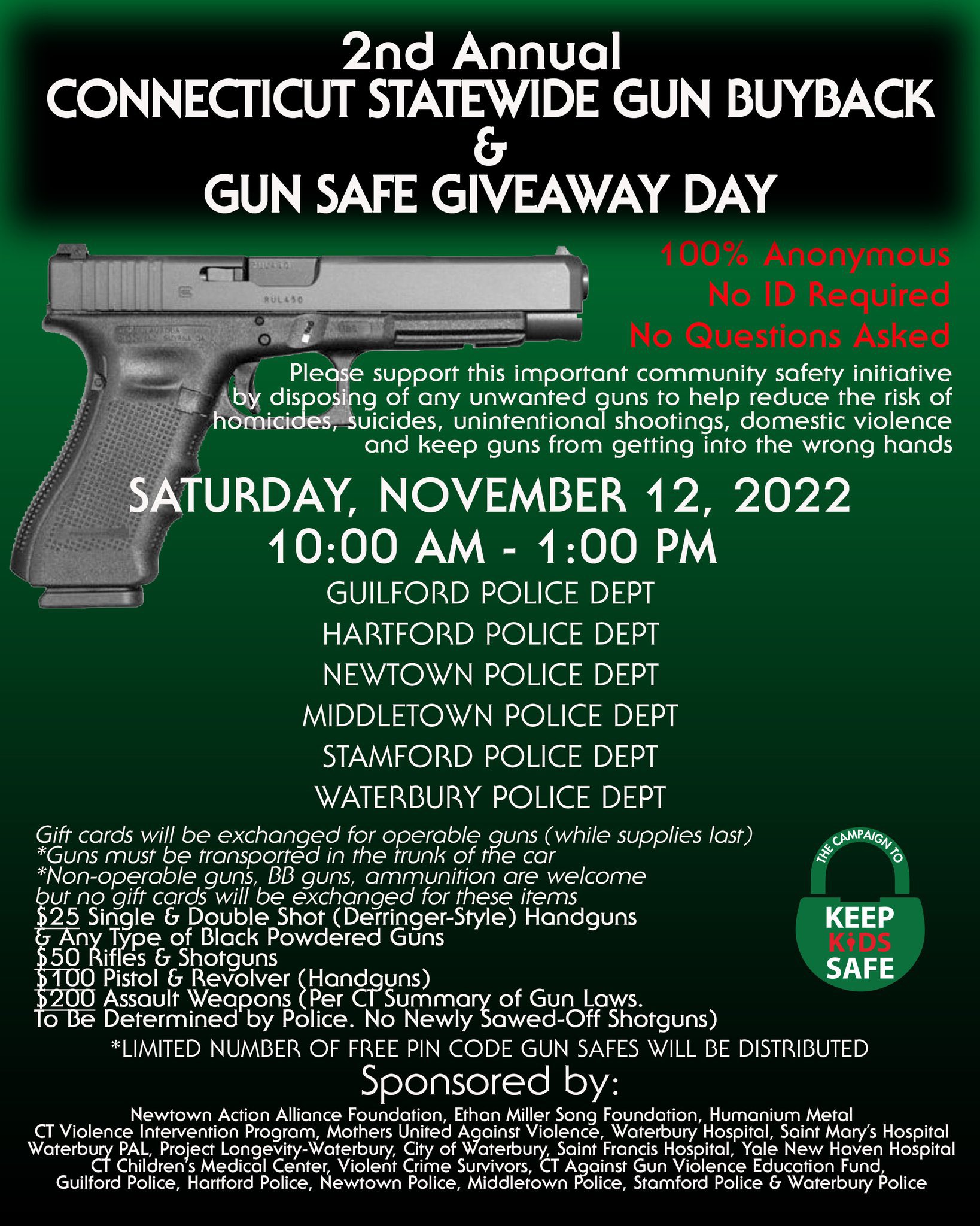 Newtown Action Alliance On Twitter Connecticut November 12th During Last Year S Keepkidssafe Connecticut Statewide Gun Buyback Over 530 Guns Including 10 Assault Weapons Were Collected Endgunviolence 275 Guns Turned In